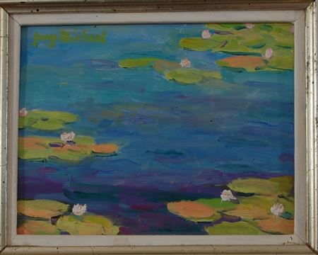 Lily Leaves and Fish, oil